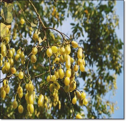 회화나무는 콩과에 속하는 잎이 넓고 낙엽 지는 큰 키 나무로, 우리나라 5대 거목으로 현재 500~1,000년 된 나무가 보호받고 있을 정도로 장수하기도 합니다. 회화나무 꽃은 8월에 경에 황백색으로 만발해 조경수와 밀원식물로도 좋습니다. 꽃이 지고 열리는 열매는 둥근 씨앗이 줄줄이 연결된 독특한 모양으로 10월경에 익는데, 각종 노폐물과 독소 제거에 도움이 되며 꽃은 동맥경화, 고혈압 등에 효과적일 뿐만 아니라 염색 재료도 사용되고 있습니다.