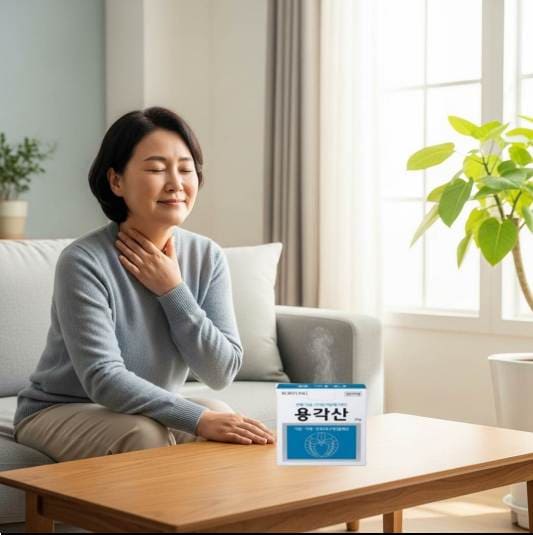 용각산은 목을 많이 사용하거나 감기 초기 증상으로 인한 인후 불편감에 특히 유용합니다. 용각산의 성분들이 목의 자극을 완화하고 회복을 돕습니다.